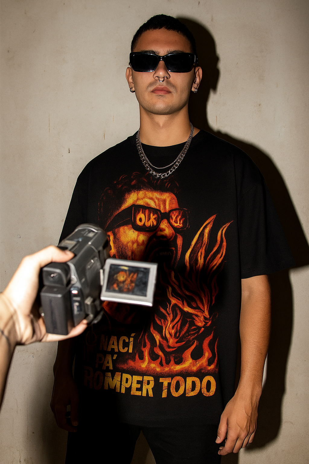 Oversize. Algodón pesado. Estampa frontal con textura punk glitch.